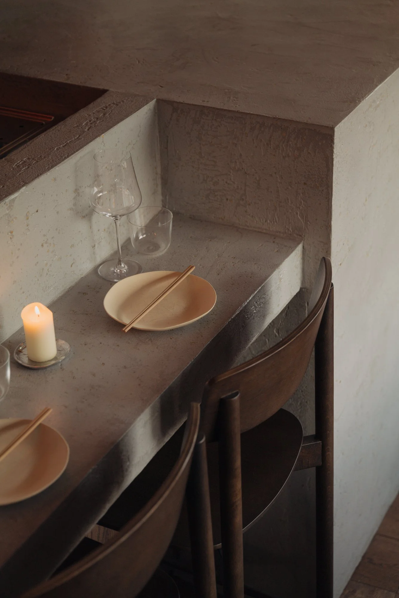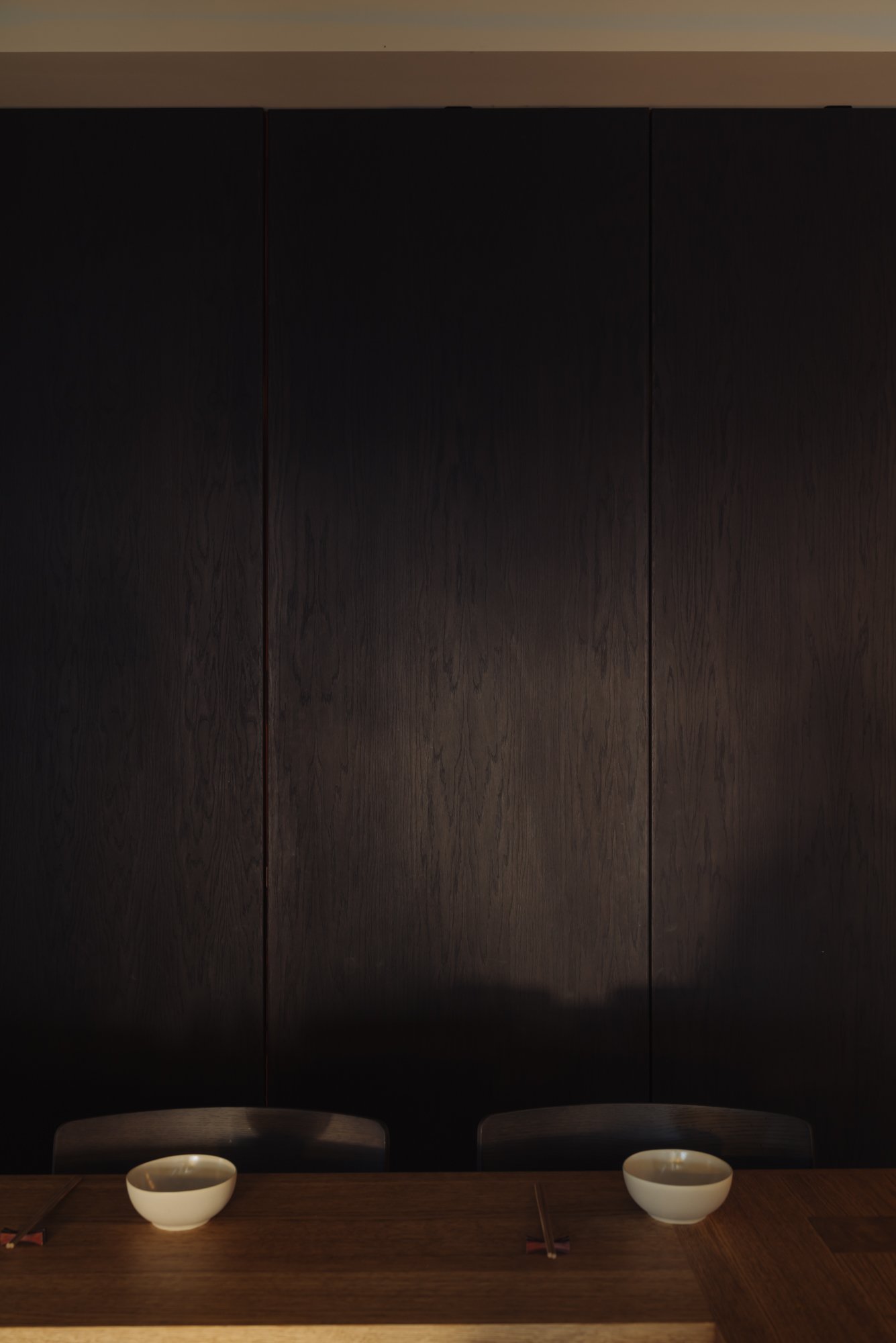 The bar is hidden from the rest of the restaurant, accessed through pivot doors which can be opened or closed – making the space flexible to accommodate and create different moods.